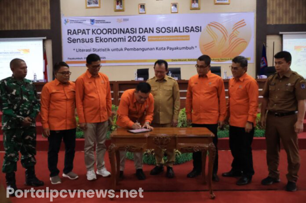 Payakumbuh,portalpcvnews.net — Pemerintah Kota Payakumbuh menegaskan komitmennya mendukung penuh pelaksanaan Sensus Ekonomi 2026 (SE2026). Penegasan itu disampaikan Wali Kota Payakumbuh, Zulmaeta, saat membuka Rapat Koordinasi dan Sosialisasi SE2026 bertema “Literasi Statistik untuk Pembangunan Kota Payakumbuh” di Aula Ngalau, Balai Kota Payakumbuh, Selasa (9/12/2025).